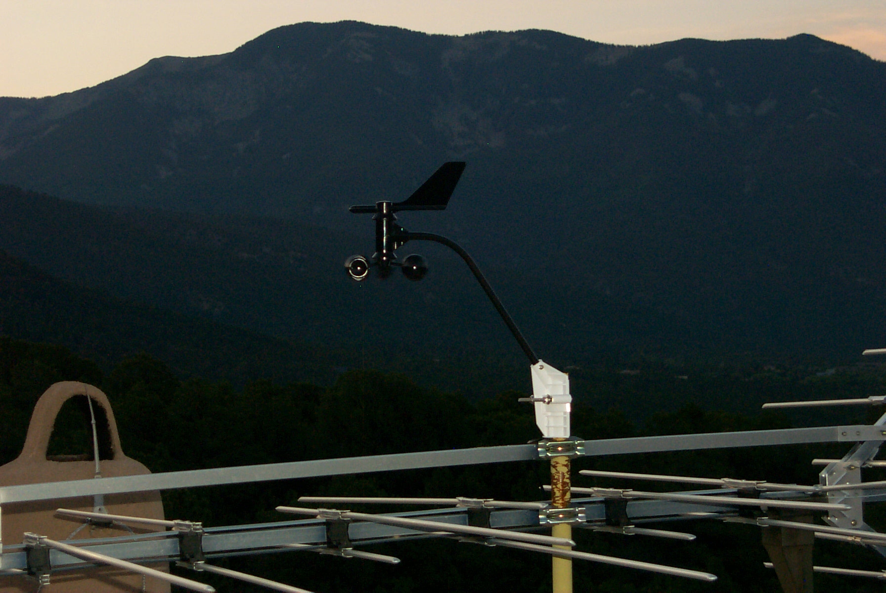 Wind speed is measured from the roof free from inaccuracies caused by buildings and trees. This is connected by a small cable to the main sensor and transmitting unit (ISS). |